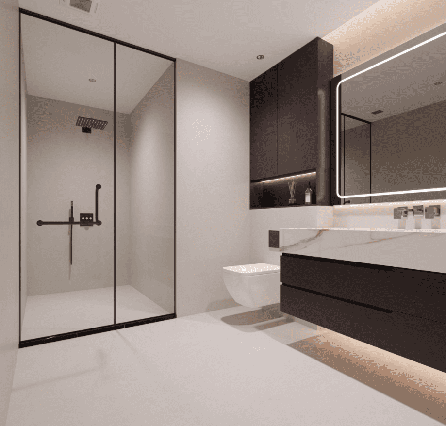 人工照明则采用无主灯设计,结合隐藏灯槽、轨道射灯、壁灯与落地灯,构建多层次、可调节的照明系统。夜晚,暖色调灯光与窗外星空呼应,营造温馨私密的归家氛围。