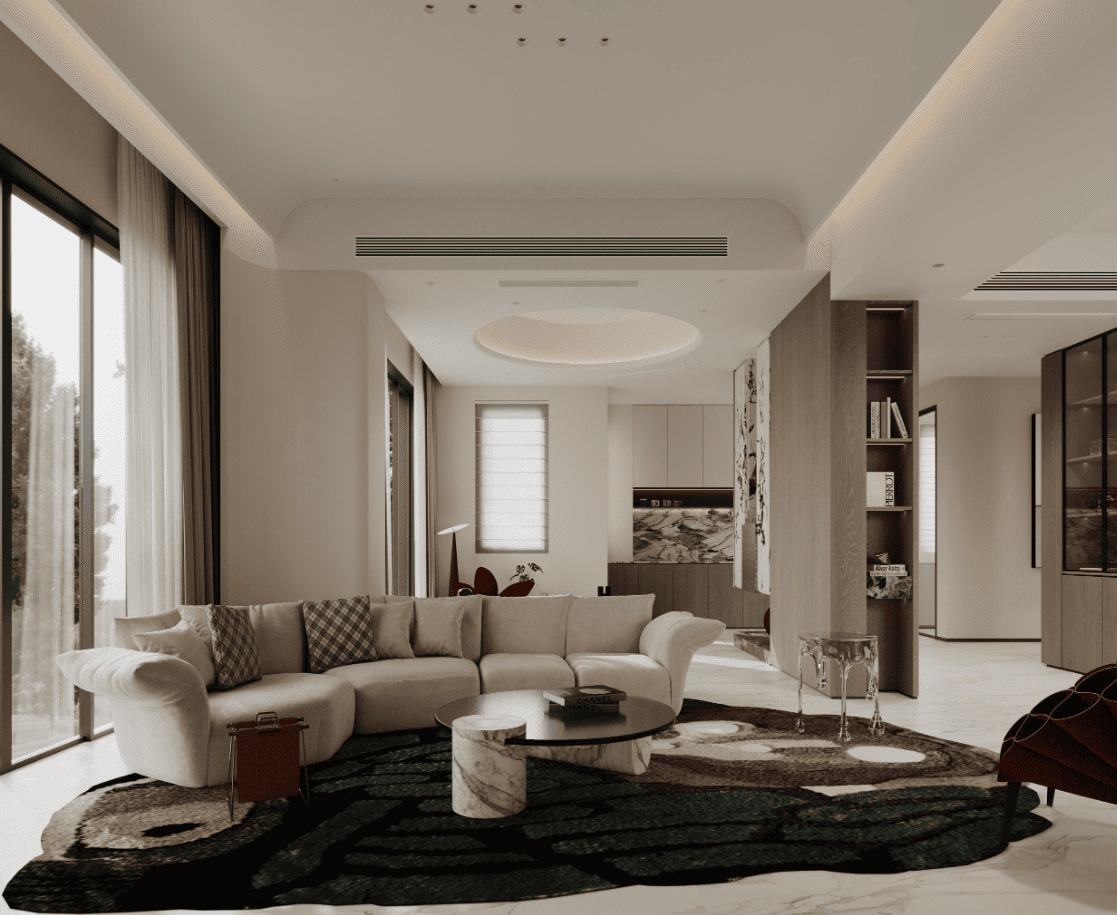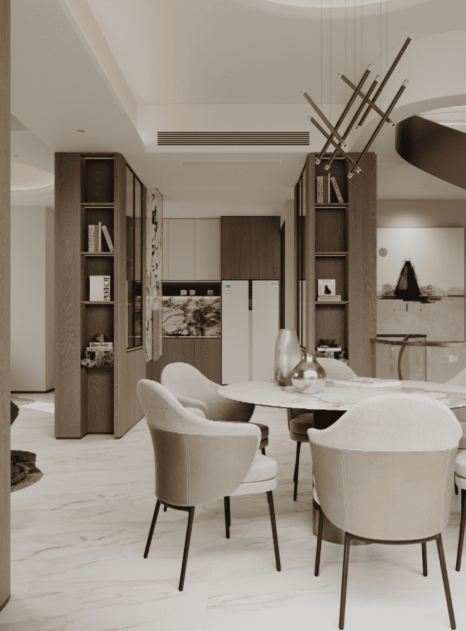现代别墅是智慧生活的集成平台。全屋智能系统可联动安防、照明、空调、窗帘、影音等设备,通过语音或手机远程控制。但技术应“隐形化”——管线预埋、设备嵌入,不破坏空间美感。例如,地暖与新风系统保障室内恒温恒湿,无主灯设计配合感应调光营造氛围,电动遮阳帘根据日照自动调节……科技服务于人,而非主导生活。同时,设计需具备“弹性”:预留适老化改造接口、儿童房成长可变性、车库充电桩等,确保别墅能伴随家庭生命周期持续焕新。