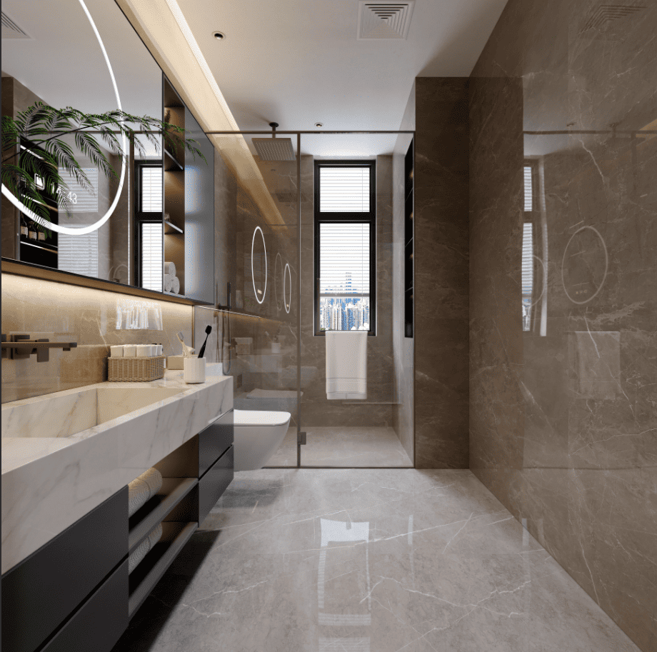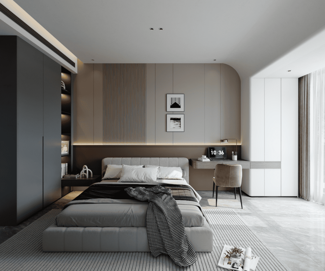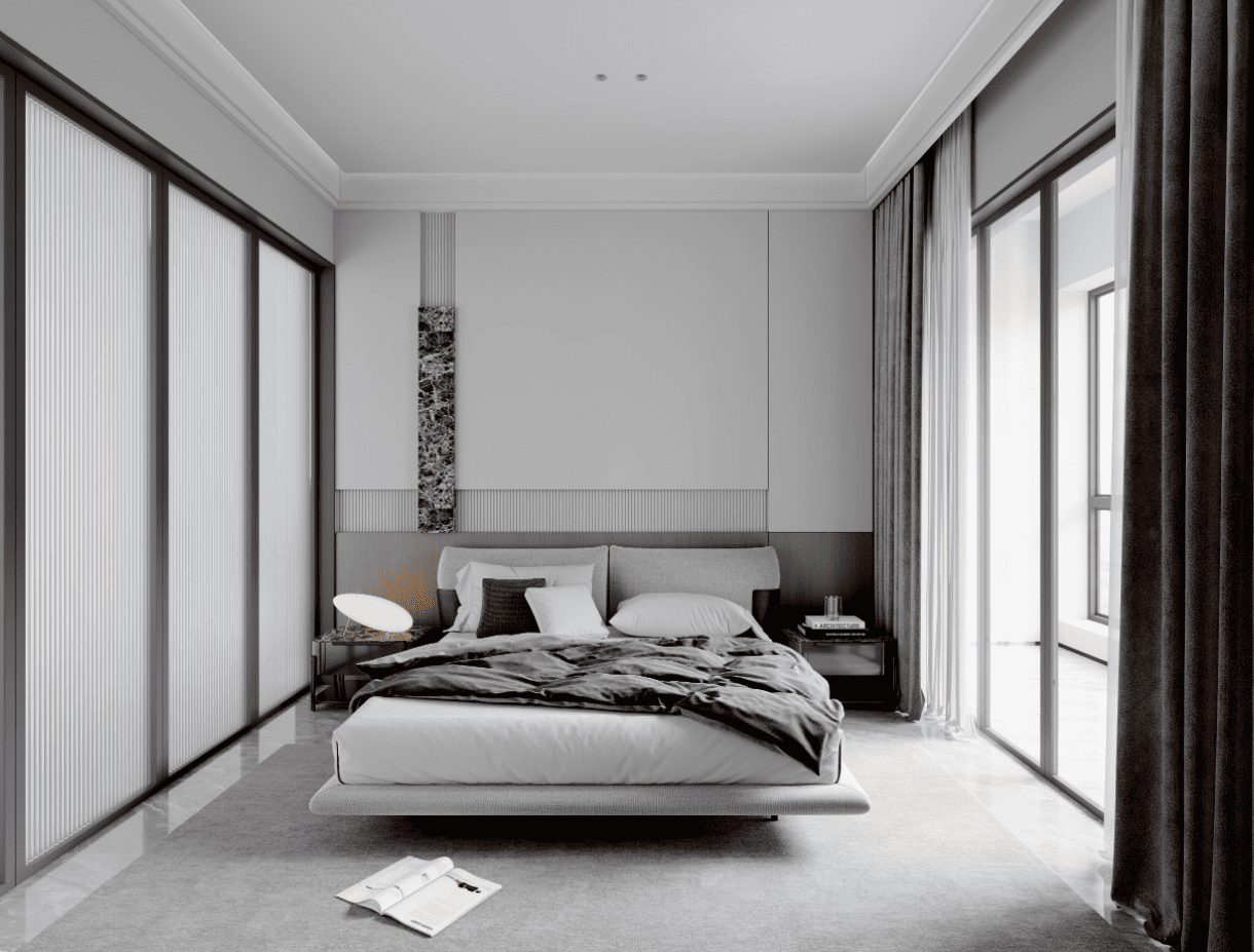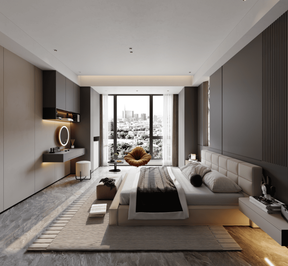 富力首府大宅的设计风格定位于“现代东方隐奢风”——摒弃繁复装饰与炫耀性材质,强调空间的秩序感、材质的天然肌理与光影的诗意流动。整体色调以高级灰、暖白、深咖、墨玉绿等低饱和色系为主,辅以胡桃木、哑光金属、天然石材与丝绒织物,营造出沉稳内敛却细节考究的氛围。奢华不在于金碧辉煌,而在于触手可及的质感、恰到好处的比例与无声流淌的气韵。