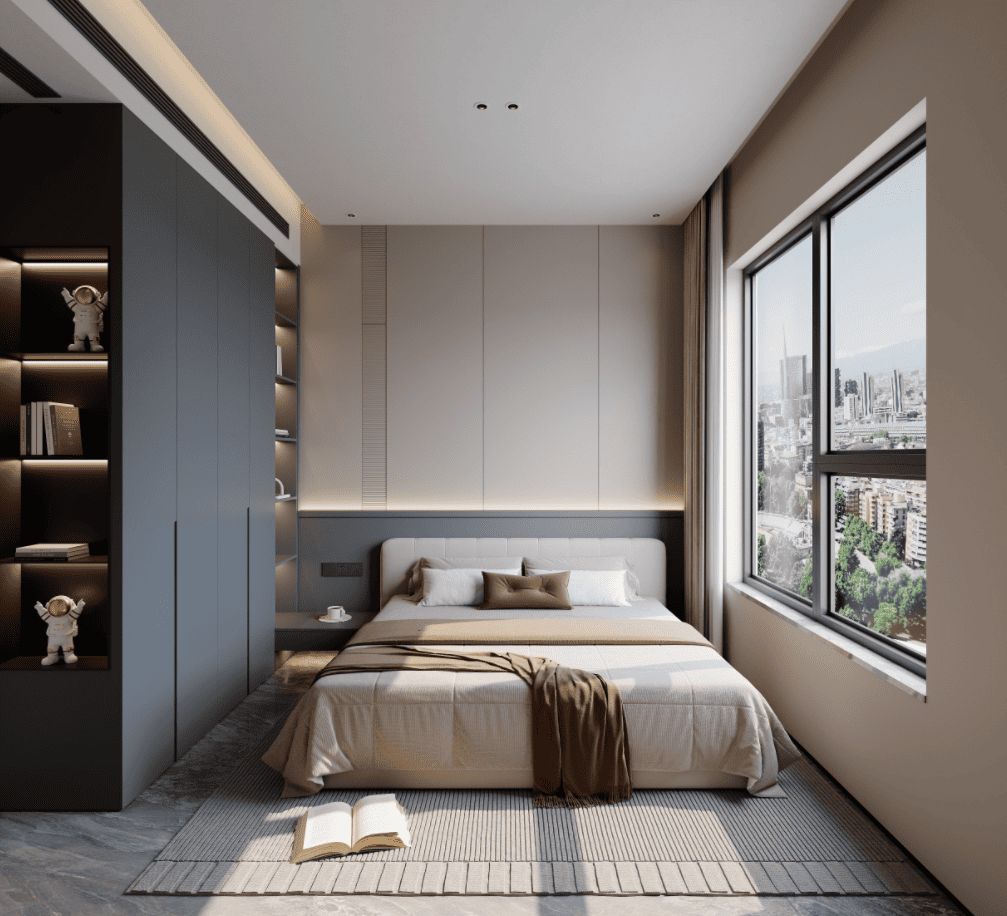 大宅之“大”,不在面积堆叠,而在空间的呼吸感与层次感。设计师充分尊重原始建筑结构,打通客厅、餐厅、中西厨与景观阳台,形成约60㎡以上的开放式公区,实现“洄游动线”与全景视野。270°转角落地窗将城市天际线或园林景观引入室内,白天光影流转,夜晚灯火璀璨,室内外界限悄然消融。