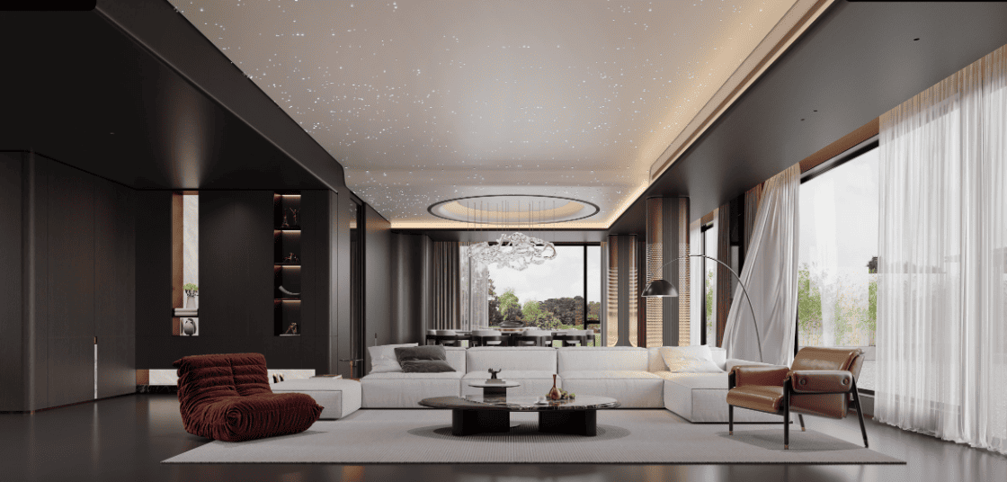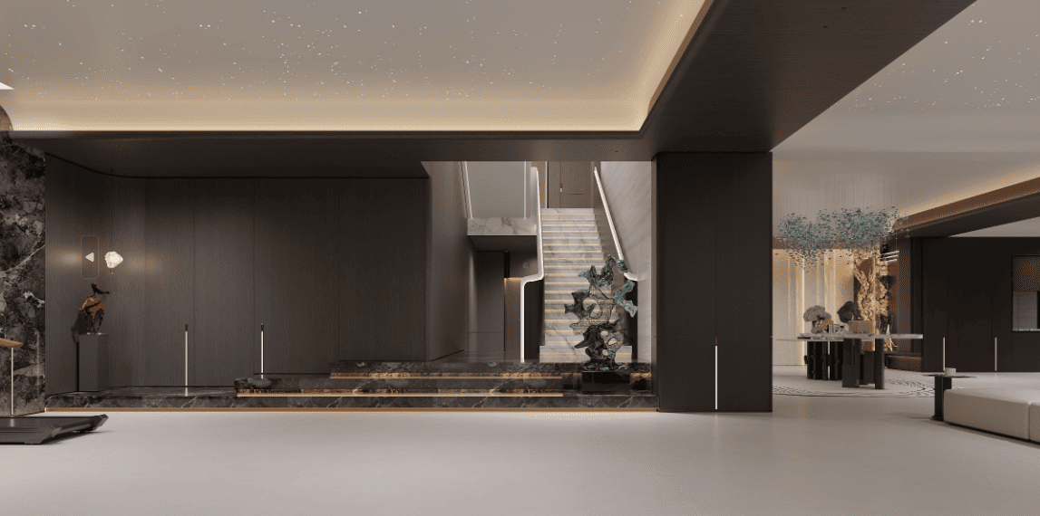 光是空间的灵魂。别墅设计应最大化利用自然采光,通过落地窗、天窗、玻璃幕墙甚至内庭院,将日光引入室内深处。不同时间段的光线变化赋予空间动态美感。夜间则依靠多层次人工照明系统:基础照明保障功能,重点照明突出艺术品或建筑细节,氛围照明(如灯带、壁灯)则营造温馨情境。智能调光系统的加入,更可依据场景自动调节亮度与色温,实现“光随人动”的沉浸式体验。
