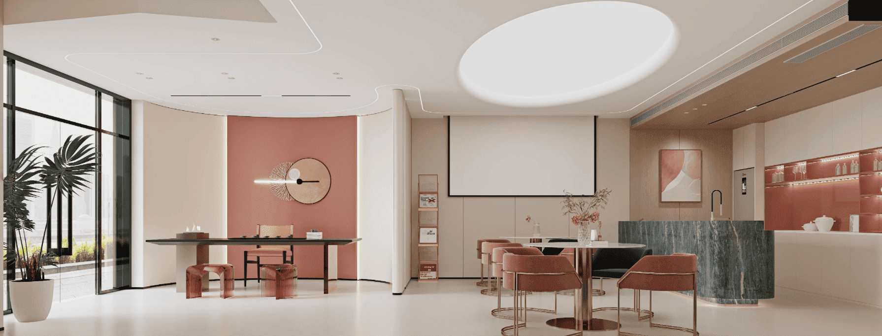 灯光在养生空间中扮演“情绪调节器”的角色。应避免刺眼的主光源,采用多层次、低照度、可调光的照明系统。基础照明以3000K左右暖白光为主,通过隐藏灯槽、壁灯、落地灯实现漫反射;重点区域如接待台、茶水吧可设置造型吊灯作视觉焦点;理疗室内则推荐使用可调色温的智能灯光,配合不同疗程切换氛围(如深度放松用暖黄光,唤醒用微白光)。同时,最大化引入自然光——通过天窗、高侧窗或玻璃隔断,让阳光随时间流动,赋予空间呼吸感。